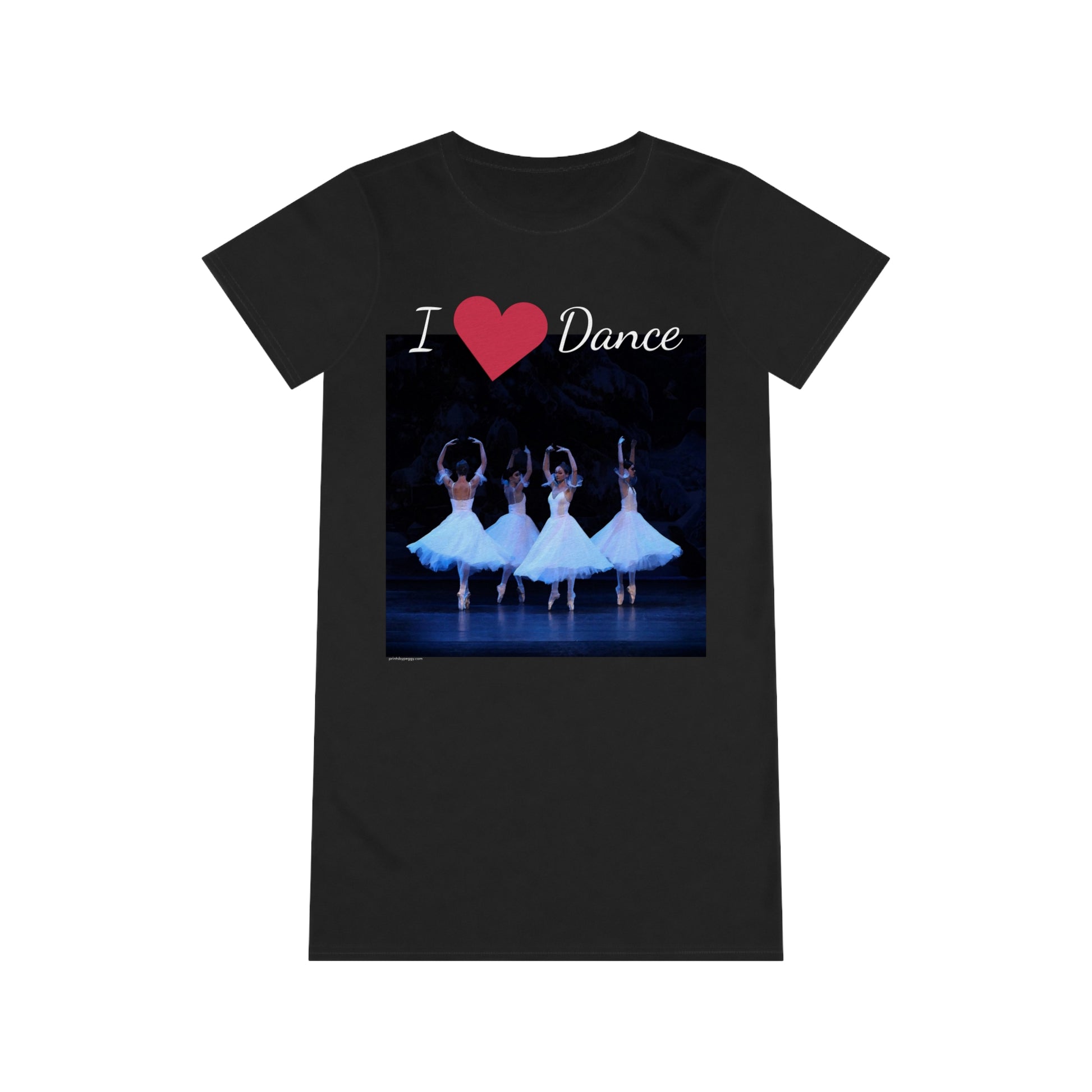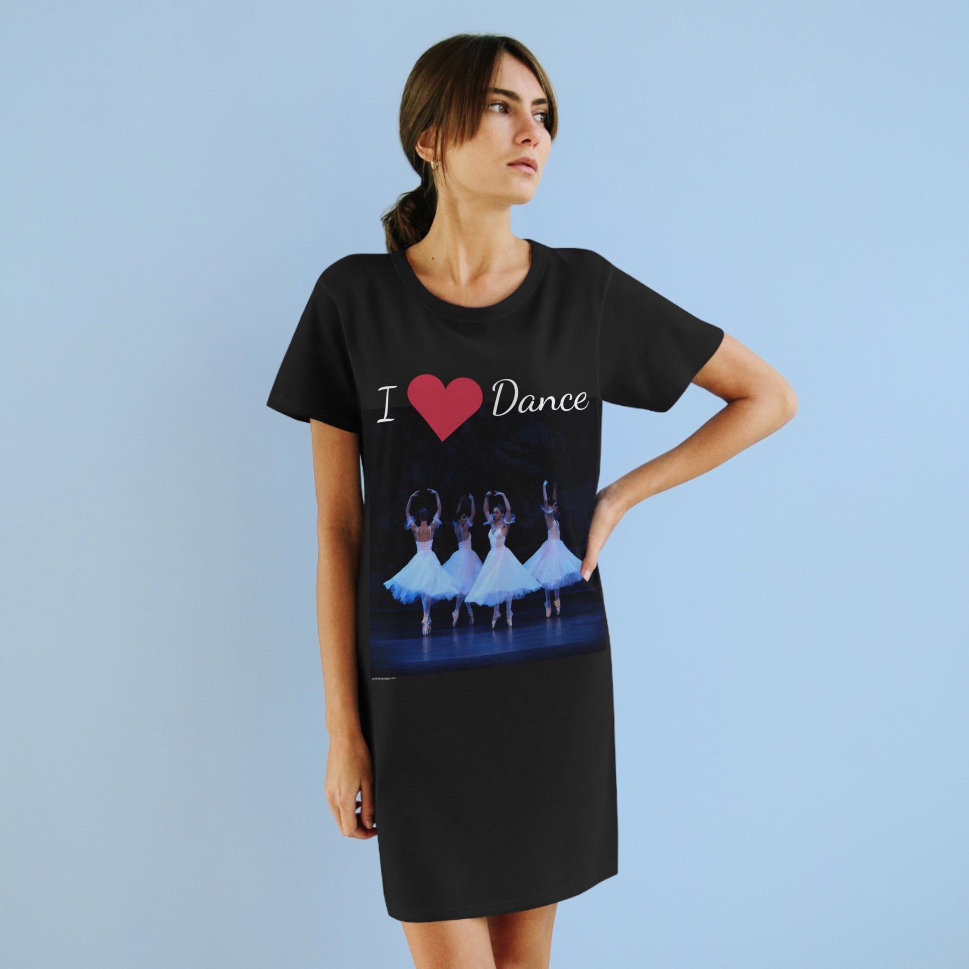 The organic cotton t-shirt dress is printed on both sides and made in Australia of 100% ringspun cotton – a comfortable and durable fabric. All materials are grown and gathered without the use of pesticides. This short-length t-shirt dress has a scoop neck, and all seams are reinforced with double-needle hems.